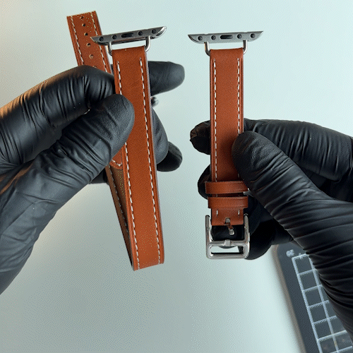 Unser Armband ist mit allen Apple Watch Modellen kompatibel und verbindet sich mit Ihrer Uhr mit nur einem Klick (wie alle Armbänder für Apple Watch).
